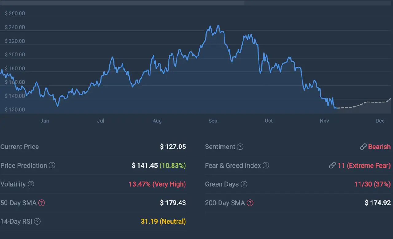 一些预测显示,SOL 将上升近 10%,达到约153美元截至12月20日,市场情绪依然悲观,恐惧与贪婪指数为11如果不能迅速收复 140 美元,下一个下跌目标位是 120 美元。