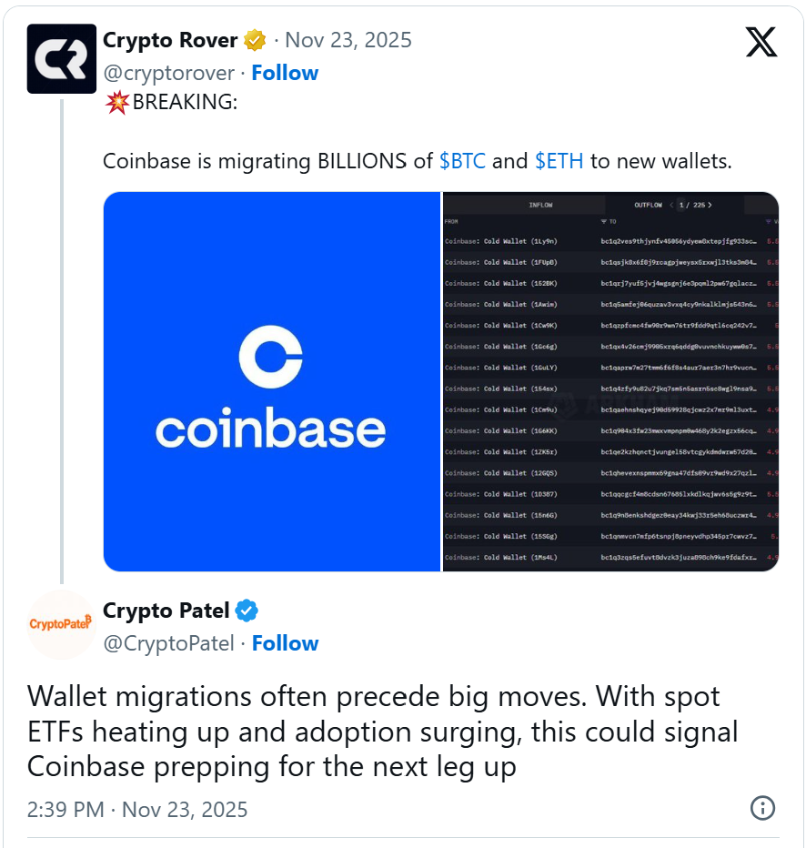 然而,Coinbase 的一位发言人表示,例行迁移通常会最大限度地减少客户资金的长期风险,并且与任何价格状况或行业变化无关。