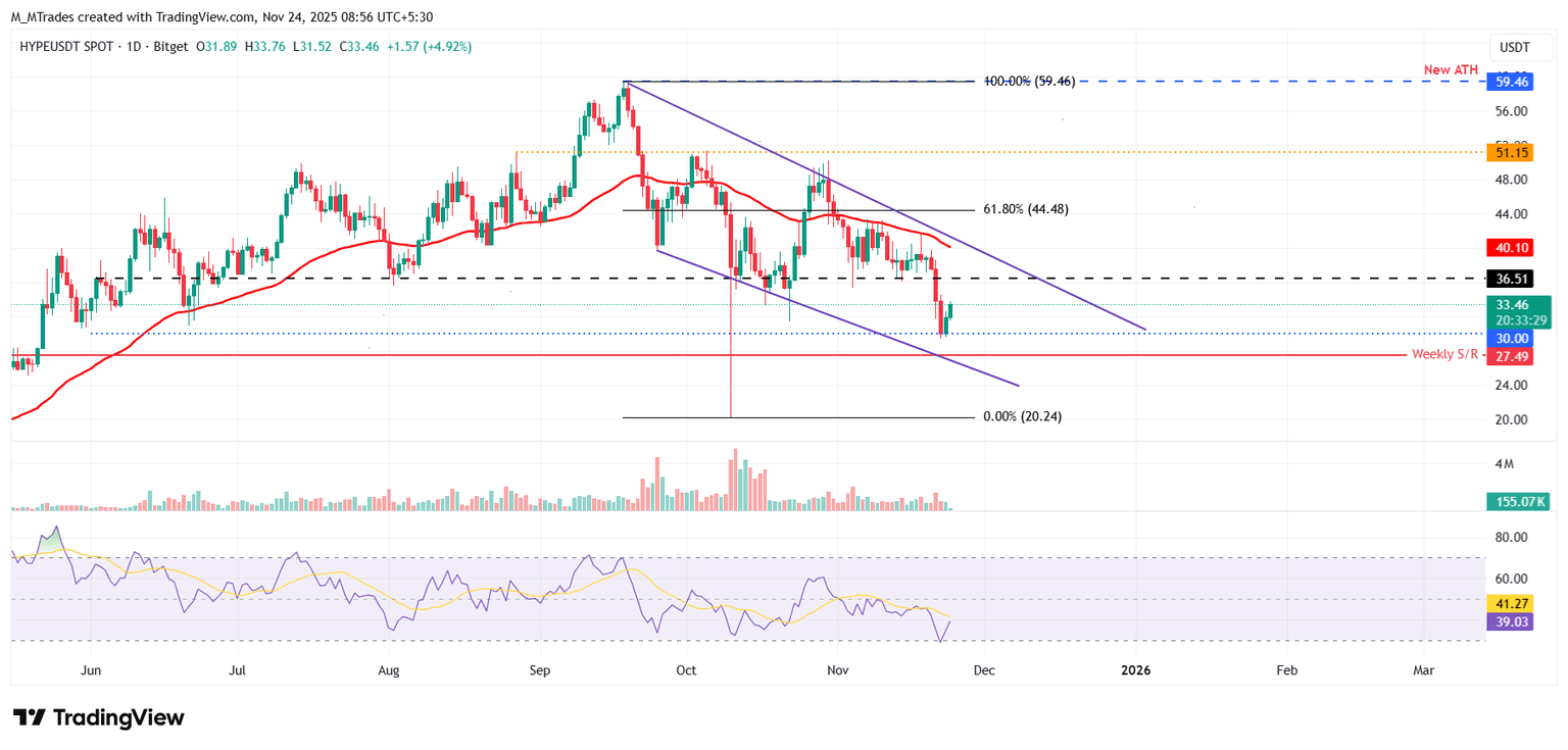 Hyperliquid 在 30 美元底线测试后展现出强劲势头