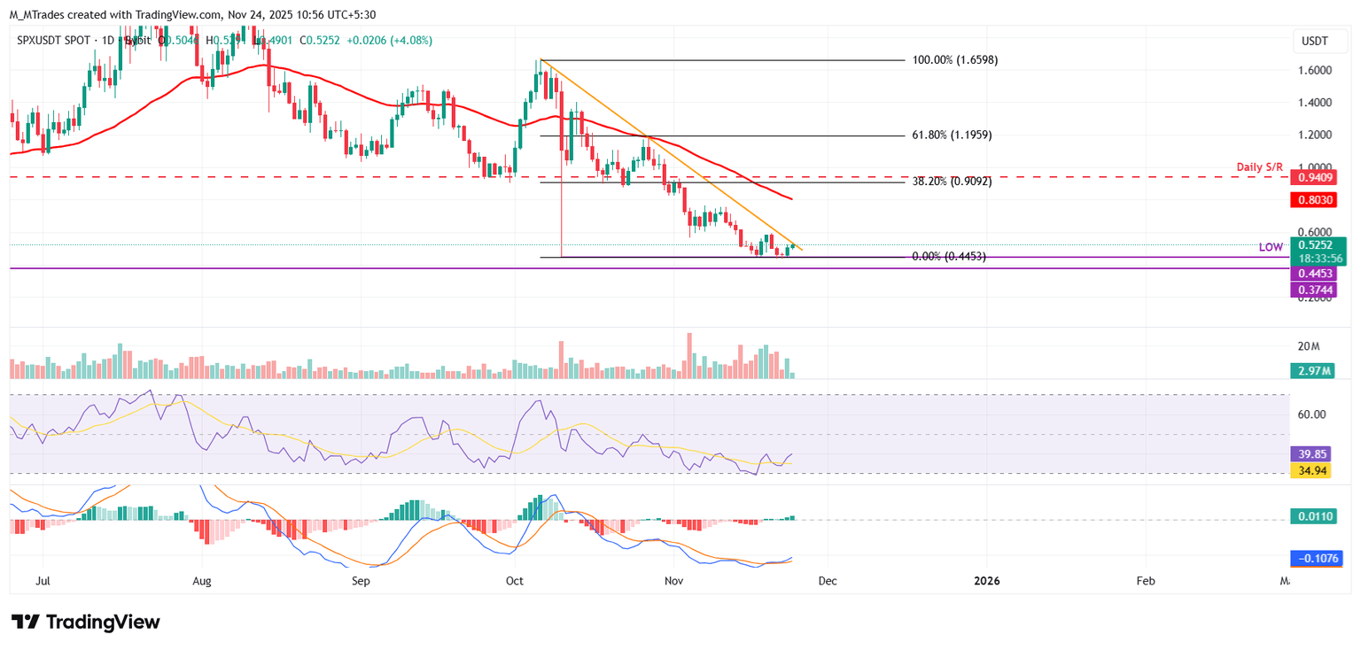 标普500指数(SPX6900)价格周六再次测试了10月10日的低点0.445美元,并在第二天反弹了9.5%。截至周一发稿时,该指数延续了反弹势头,接近0.525美元附近的下降趋势线。