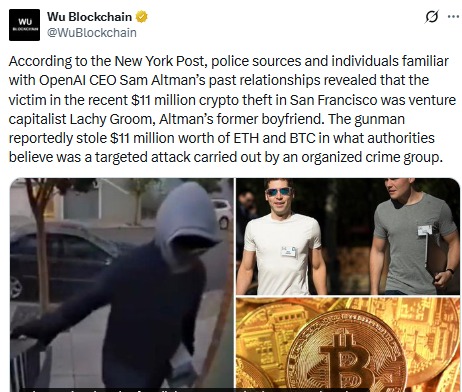据报道,旧金山加密货币盗窃案受害者风险投资家拉奇·格鲁姆是一位知名的科技人物,他曾与 OpenAI 首席执行官萨姆·奥特曼交往过。