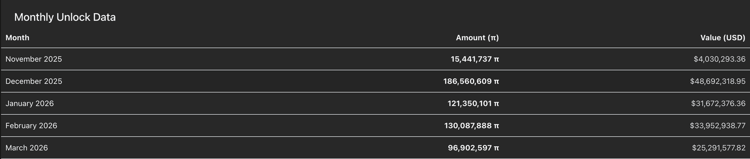 游戏扩张带来的供应激增恰逢即将于12月解锁的1.86亿枚PI代币,这相当于中心化交易所(CEX)上可交易的4.3148亿枚PI代币总供应量的43%。通常情况下,代币解锁会在投资者信心低迷时加剧抛售压力。